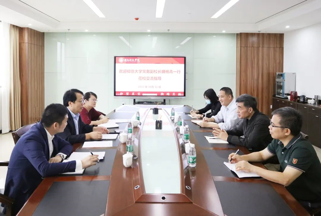 10月18日下午,仰恩大学常务副校长魏杨青、校长助理鲍莹玉、校办副主任赵祥志一行3人到乐动平台交流座谈。校长游小波、常务副校长周勇军,以及相关职能部门负责人参加座谈会。