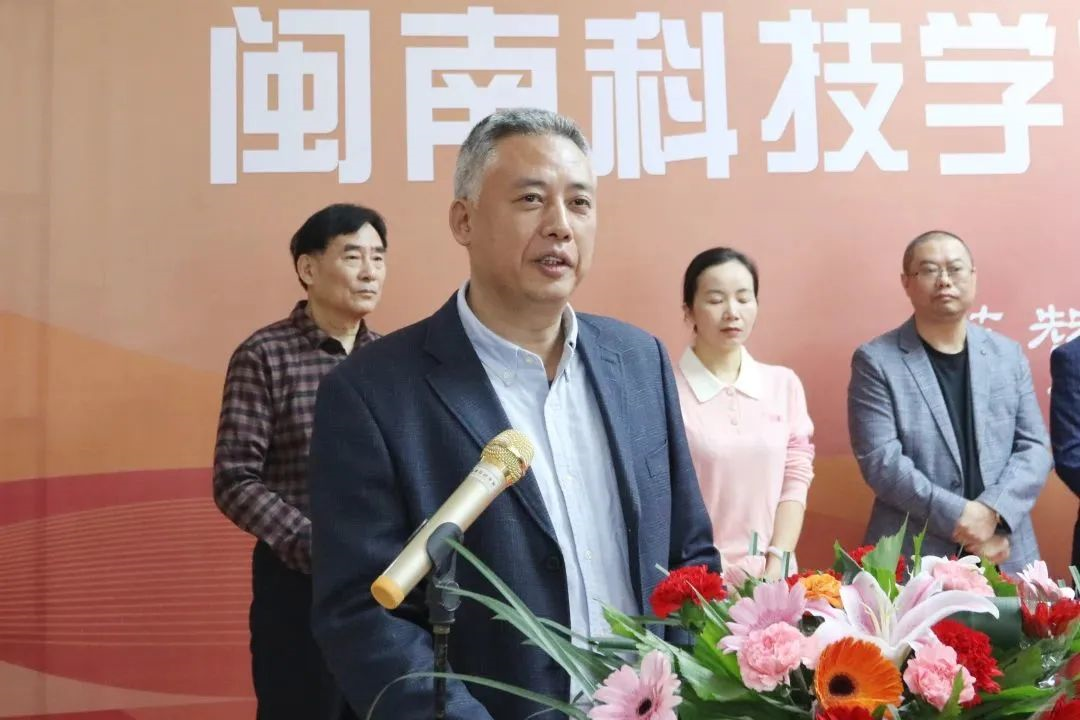 随后,南安市委副书记、市纪委书记、市监委主任林添盛,南安市委宣传部常务副部长吴亚明,校党委书记李旭,艺术设计学院院长徐俊东共同为展览揭幕。