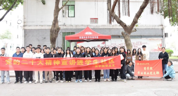 12月1日,商学院“商小宝”大学生理论宣讲小分队深入学生社区,开展“学思践悟二十大,勠力同心谱新章”主题党日活动。