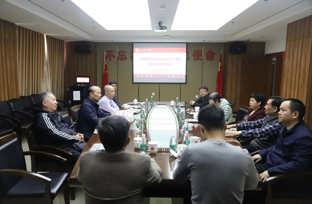 3月17日,原民盟泉州市委会专职副主委吴庆祥、林敬初带领民盟泉州市机关离退休支部盟员一行7人莅临乐动平台参观指导。校领导邱永渠,党政办公室、组织部、宣传部、校民盟支部等相关负责人参加座谈。