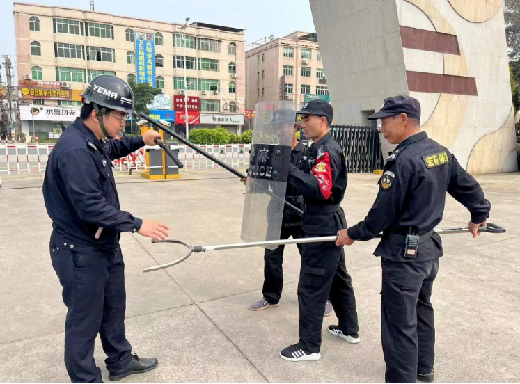演练前,警官代表从实战角度出发,结合大学校园治安防范特点,现场演示了各种反恐防暴器械的功能、使用方法及实操技术要领,对安保队员使用各种器材进行现场指导。