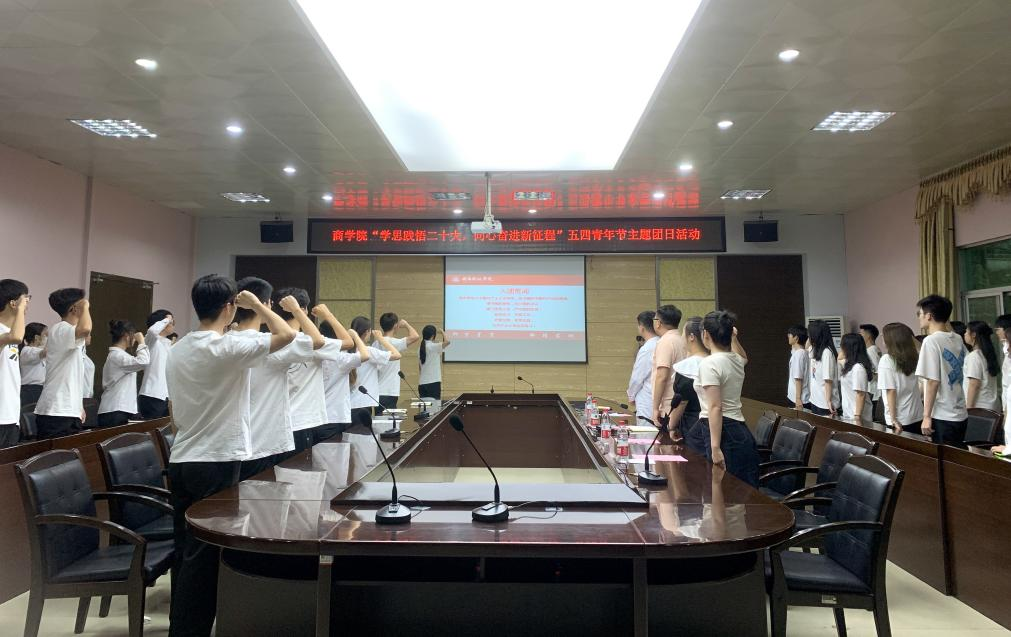 商学院团委开展“学思践悟党的二十大,同心奋进新征程”五四青年主题团日活动。围绕学习习近平总书记给中国农业大学科技小院的同学们回信、观看红色经典影片、为新团员佩戴团徽、重温入团誓词等内容,勉励广大团员青年要坚定理想信念,锤炼过硬本领,将自我梦想与国家需要相结合,走好新时代的青年征程。