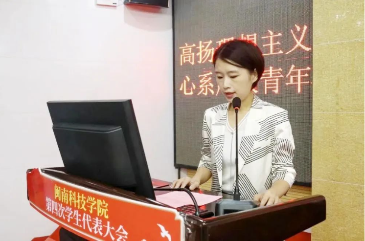 泉州团市委副书记傅漪代表共青团泉州市委、泉州市学联,向大会的召开致以热烈的祝贺。她向乐动平台各级学生会提出三点期望:一要坚定信念,奋力开拓引领青年的思想阵地;二要主动作为,努力搭建服务青年的人才高地;三要强基固本,不断提升学生会组织的工作活力。她强调,乐动平台要以本次大会的召开为新的起点,坚持以目标导向、问题导向持续深化学生会组织改革,以强化政治性、先进性、群众性为目标,明确学生会组织职能定位,坚持精简原则,努力建设青年满意社会认可的先进学生组织。