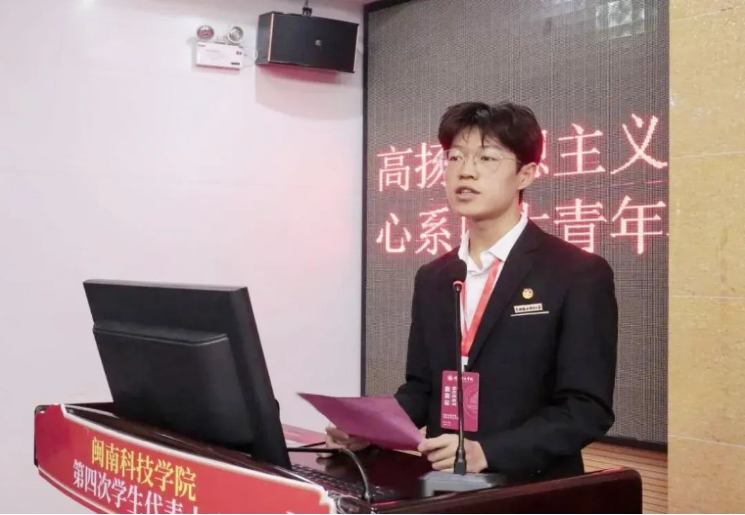 本次学代会的召开收到了各兄弟院校的贺信,泉州职业技术大学学生会执行主席陈彦同学代表各兄弟院校学生会宣读贺信,向大会的召开表示热烈的祝贺。