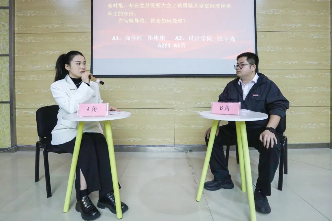 在案例研讨环节中,由随机抽签的同组AB角色两位辅导员,以“我提问,你回答”的方式,围绕案例共同辨析原因、研讨对策、总结规律。参赛辅导员结合自身工作实际,研判案例的重难点,从案例中探求解决思路、凝练解决方法,展现了乐动平台辅导员良好的精神面貌和逻辑思辨能力。