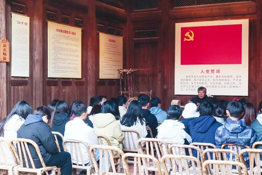 在晋江内坑红色粮仓革命遗址大院,学员们围坐在一起共同学习《论党的青年工作》,大家积极发言,热烈讨论,深刻认识《论党的青年工作》的重大意义、领会丰富内涵,大家一致表示将坚定理想信念,在专业学习、实践锻炼、志愿服务中“自讨苦吃”加油干,以更加昂扬的精神状态和奋斗姿态积极投身于中国式现代化建设中,为全面建设社会主义现代化国家贡献青春力量。