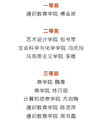 评委们对参赛选手课堂教学内容介绍、教学创新成果报告和教学设计创新汇报三个部分的评分,经过激烈角逐,通识教育学院傅金波教授脱颖而出,荣获本届竞赛一等奖。